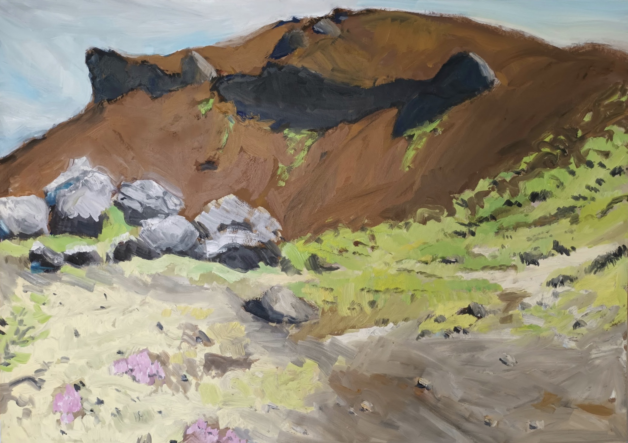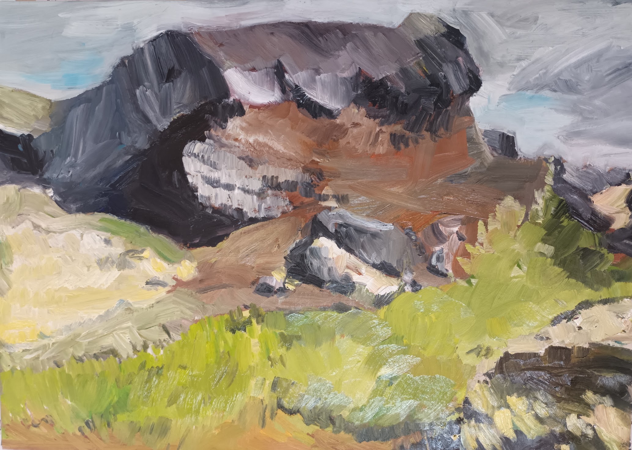 7/9 Iceland 2025, Rauðhólar, les soulèvements de la Terre, neuf formats 50×70 huile sur carton. 1/9 2/9 3/9 4/9 5/9 6/9 7/9 8/9 9/9